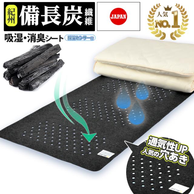 湿気とニオイ(汗臭)を吸収!【紀州備長炭繊維使用 吸湿・消臭シート】<シングル>