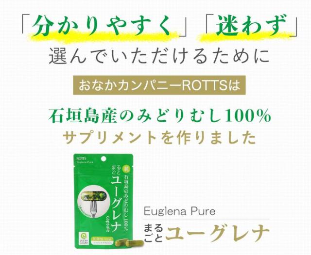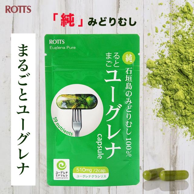 ユーグレナ 認証 みどりむし 100% 高配合 サプリ まるごとユーグレナ 30カプセル 純 石垣島 ミドリムシ 1粒に510mgの ユーグレナ粉末 配合 サプリメント パラミロン ダイエット ROTTS ロッツ メーカー公式