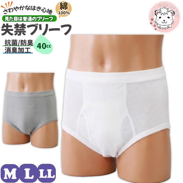 さわやか 失禁ブリーフ 40cc 抗菌 防臭 吸水 綿100% M/L/LL | 軽失禁 尿漏れ 失禁 介護 通院 メンズ 綿 失禁ブリーフ ブリーフ パンツ インナー