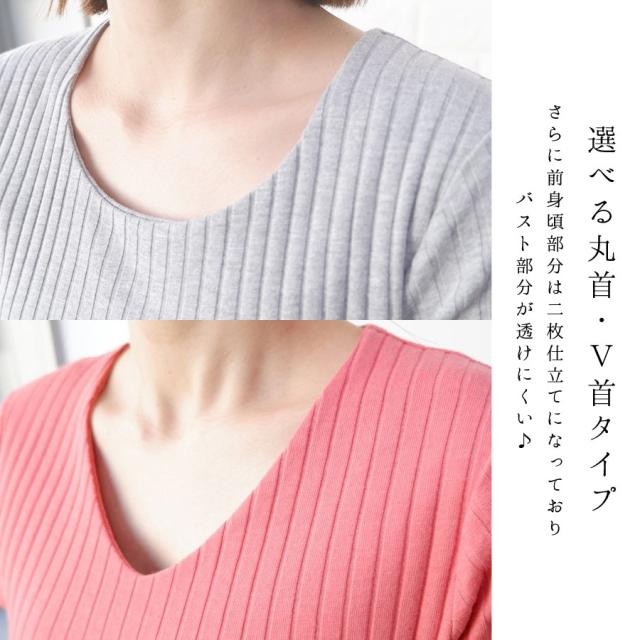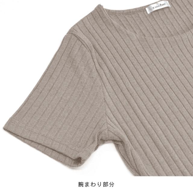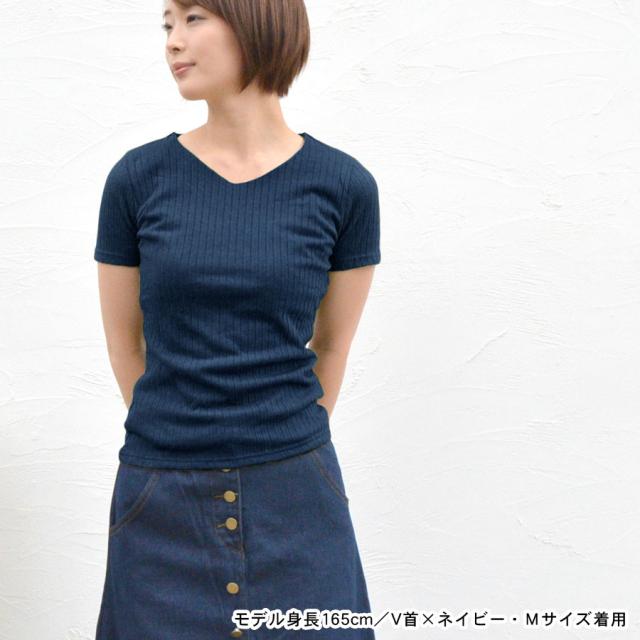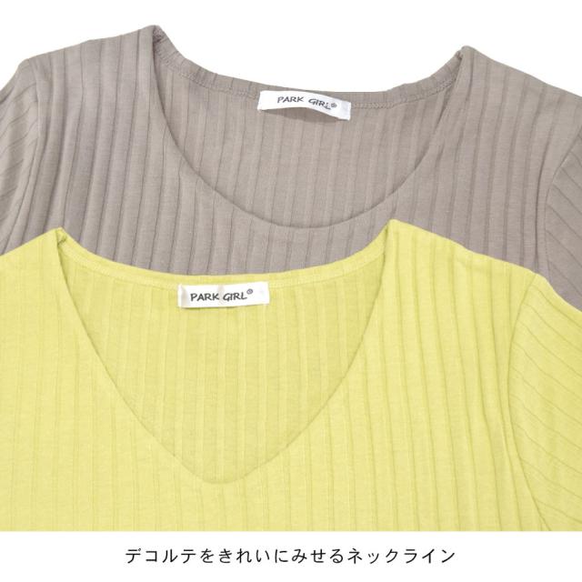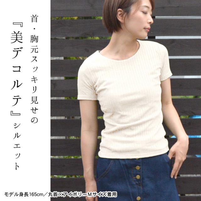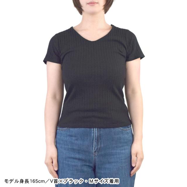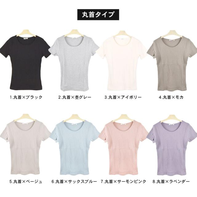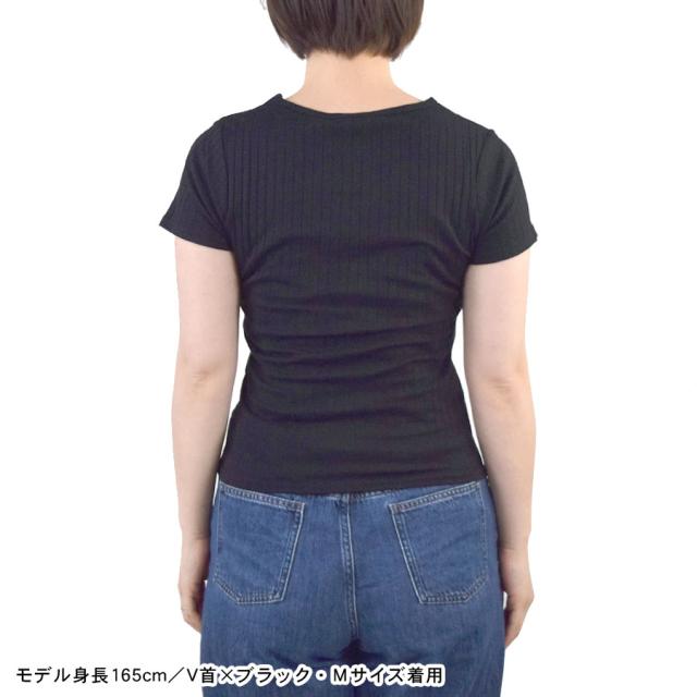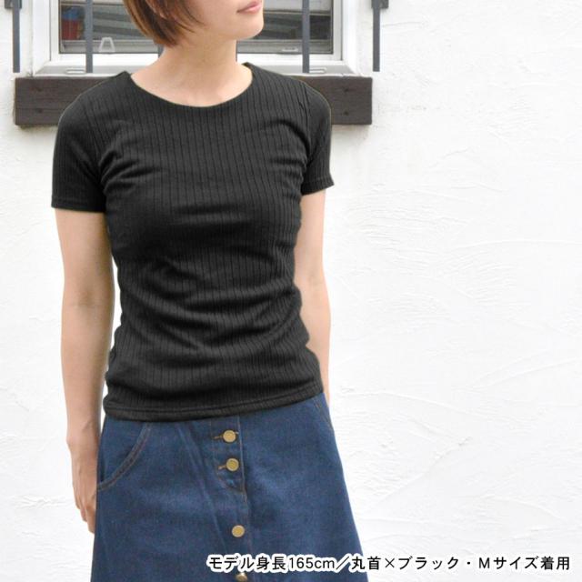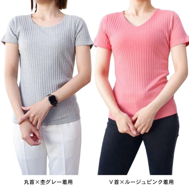 【Tシャツ カットソー リブ地 レディース トップス 二枚仕立て 半袖 リブ タイト クルーネック Uネック ラウンドネック ストレッチ 伸縮性 フィット シンプル 無地 カジュアル きれいめ ベーシック 定番 透けない】