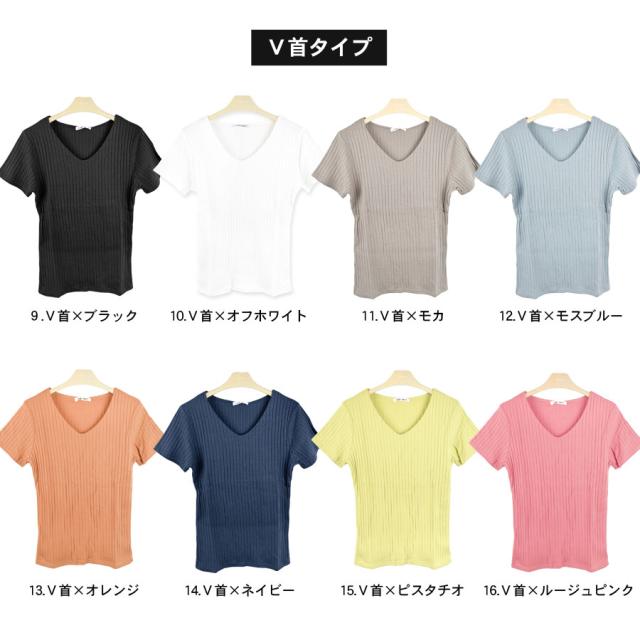 カットソー 半袖 レディース きれいめ Tシャツ リブ地 トップス リブ タイト クルーネック Vネック 無地 Uネック ラウンドネック ストレッチ 伸縮性 フィット シンプル カジュアル ベーシック 定番 透けない 二枚仕立て (bc0003)