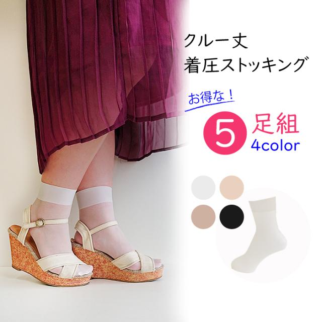 国内生産着圧クルー丈ストッキングが、お得な5足組!