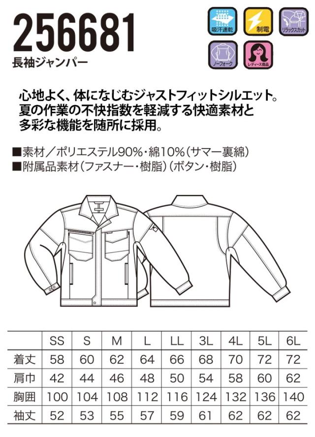 長袖ジャンパー クロダルマ 256681 ブルゾン ジャケット 男女兼用 メンズ レディース 吸汗速乾 制電 春夏 作業服 作業着【SS-3L】
