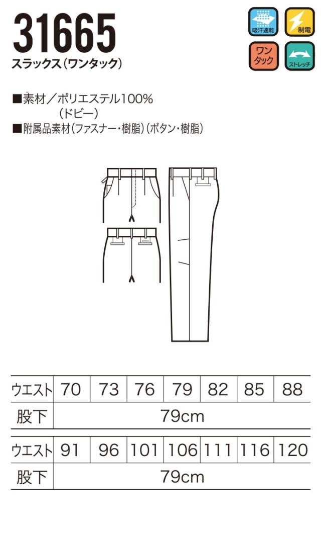 スラックス ワンタック クロダルマ 31665 メンズ 男性用 ズボン パンツ ストレッチ 吸汗速乾 制電 春夏 作業服 作業着【70-96】