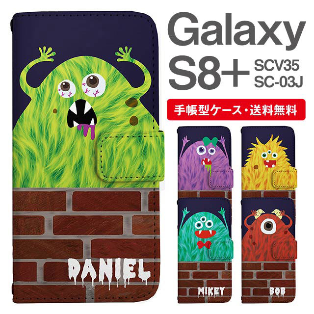 スマホケース 手帳型 Galaxy S8+ ギャラクシー SC-03J SCV35 携帯ケース カバー 送料無料 モンスター キモカワ 怪物 イラスト agesugi_ssm