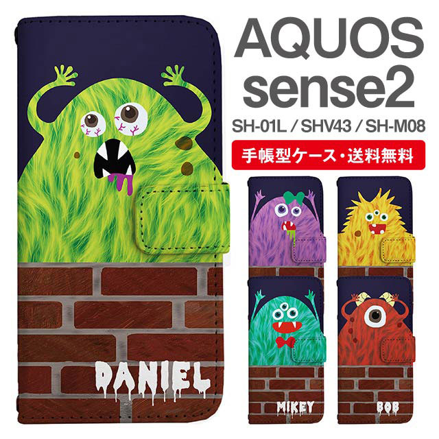 スマホケース 手帳型 AQUOS sense2 アクオス SH-01L SHV43 SH-M08 携帯ケース カバー 送料無料 モンスター キモカワ 怪物 イラスト agesugi_ssm