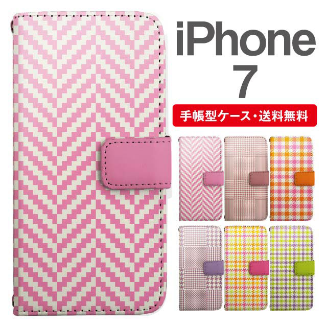 スマホケース 手帳型 iPhone7 アイフォン 携帯ケース カバー 送料無料 チェック シェブロン グレンチェック ギンガムチェック agesugi_ssm