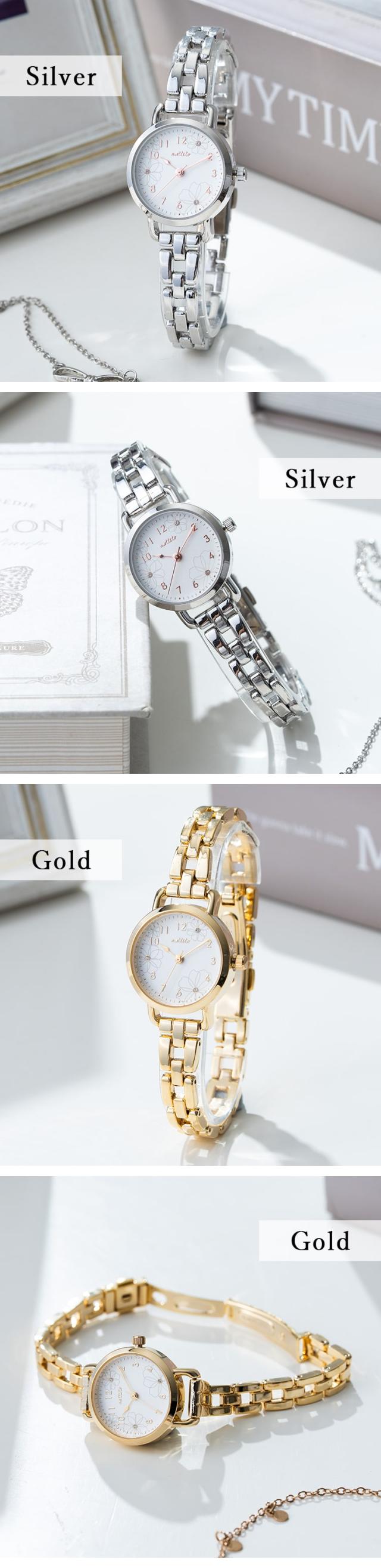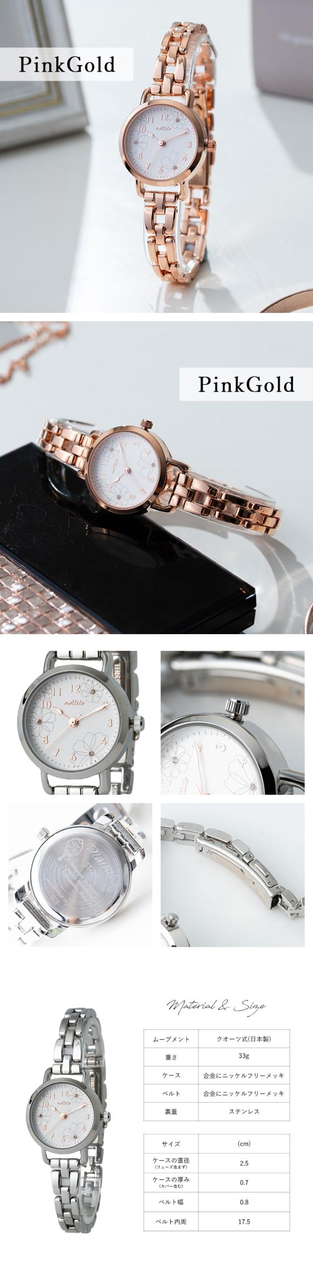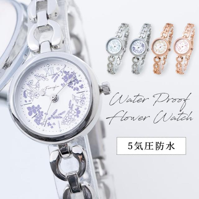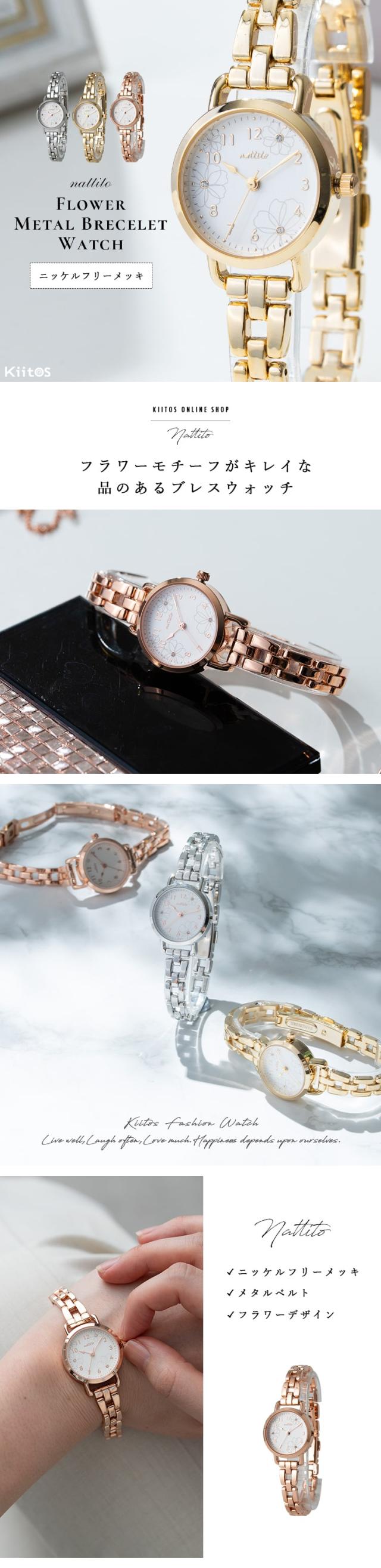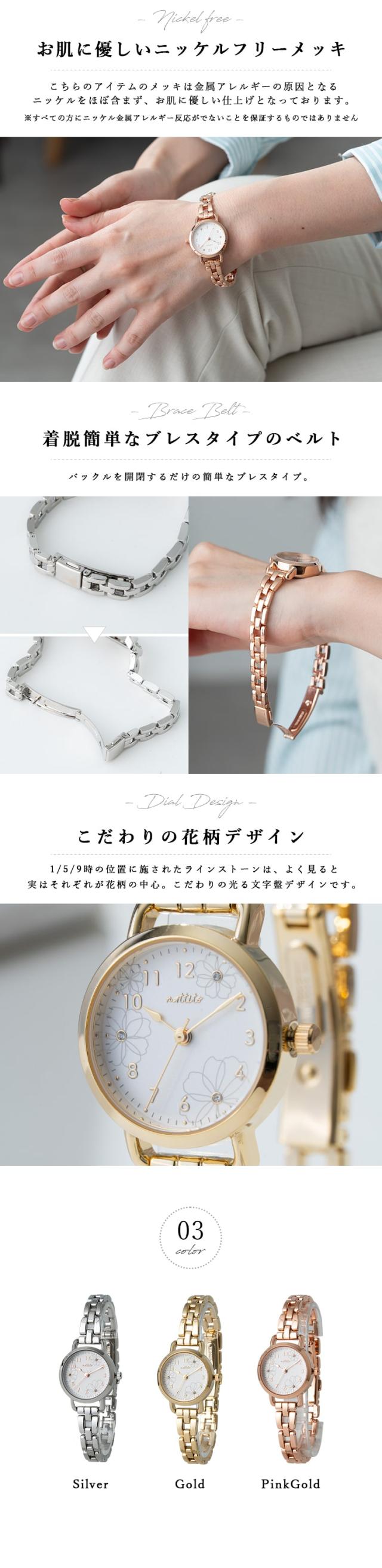 腕時計 レディース ニッケルフリー 花柄 金属アレルギー ブレスレット 金属ベルト バックル ラインストーン かわいい おしゃれ 大人 プレゼント ギフト 1年間のメーカー保証付き