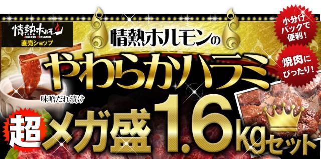 ハラミ 焼肉 超メガ盛セット やわらか ハラミ 味噌だれ漬け 1.6kg 焼肉 バーベキュー BBQ 肉 食品 牛肉 情熱ホルモン 情ホル 北海道沖縄配送は別途送料追加