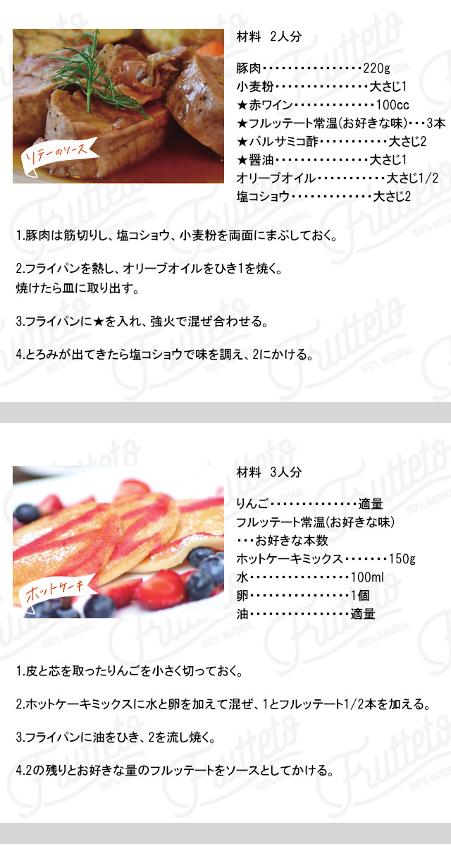 フルッテートを使ったアレンジレシピもご紹介してます。