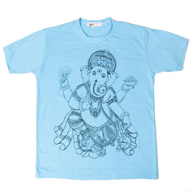 そんなガネーシャを、柔らかくて着心地の良いTシャツにプリントしたのが、こちらの商品です。色合いも優しく、エスニックからジーンズ等の洋服まで様々なお洋服にも似合う一品です!