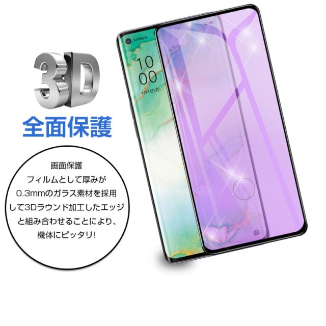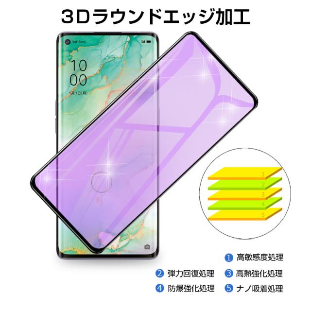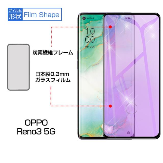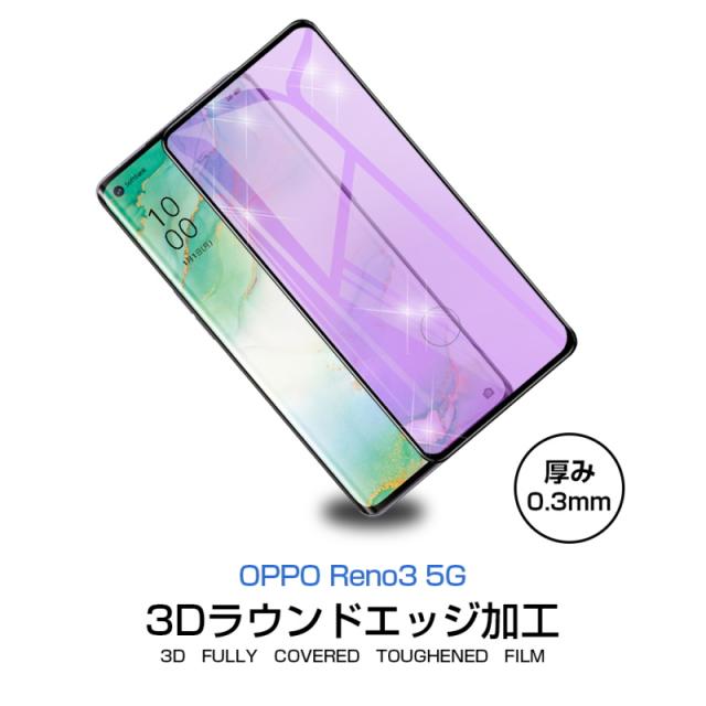 【2枚セット】OPPO Reno3 5G A001OP 強化ガラス保護フィルム ブルーライトカット softbank 液晶保護 3D全面保護 画面保護 スマホフィルム