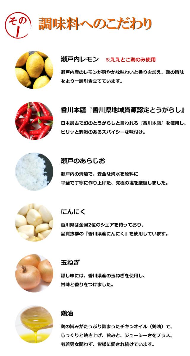 ええとこ鶏・・・鶏肉(国産)、シーズニングパウダー、レモンパウダー、鶏油