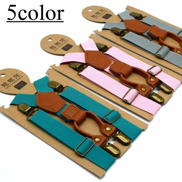 サスペンダー 子供 キッズ 男の子 女の子 ファッション小物 Y字型 吊りバンド 4クリップ ズボン吊り 無地 皮風 カジュアル