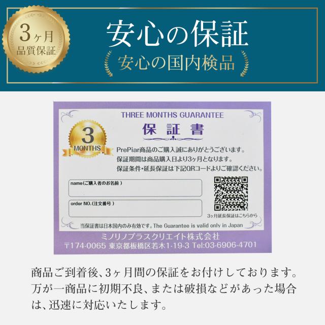PrePiarではすべての商品に品質保証書をお付けしております。