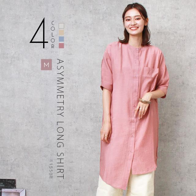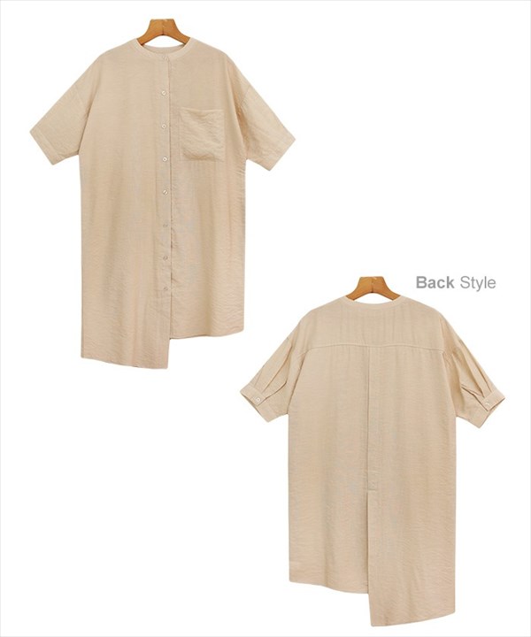 送料無料 バンドカラー シアーシャツ ロング シアー アシンメトリー シャツ ワンピース レディース 半袖 アシメ トップス シャツワンピース バックスリット シャツワンピ 春 夏 大きいサイズ シンプル かわいい オフィスカジュアル お出かけ デート 楽ちん ゆったり Ladies onepiece shirt ホワイト 白 ベージュ ブルー ピンク 20代 30代 40代 大人 コーデ 春新作