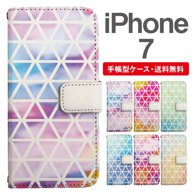 スマホケース 手帳型 iPhone7 アイフォン 携帯ケース カバー 送料無料 トライアングル 三角柄 グラデーション agesugi_ssm