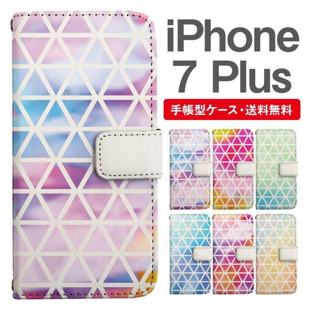 スマホケース 手帳型 iPhone7Plus アイフォン 携帯ケース カバー 送料無料 トライアングル 三角柄 グラデーション agesugi_ssm
