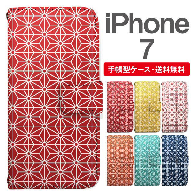 スマホケース 手帳型 iPhone7 アイフォン 携帯ケース カバー 送料無料 和柄 麻の葉模様 agesugi_ssm