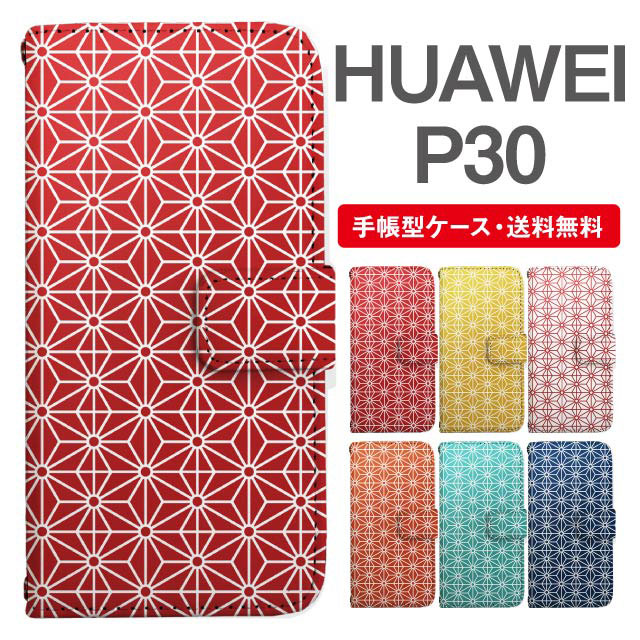 スマホケース 手帳型 HUAWEI P30 ファーウェイ 携帯ケース カバー 送料無料 和柄 麻の葉模様 agesugi_ssm