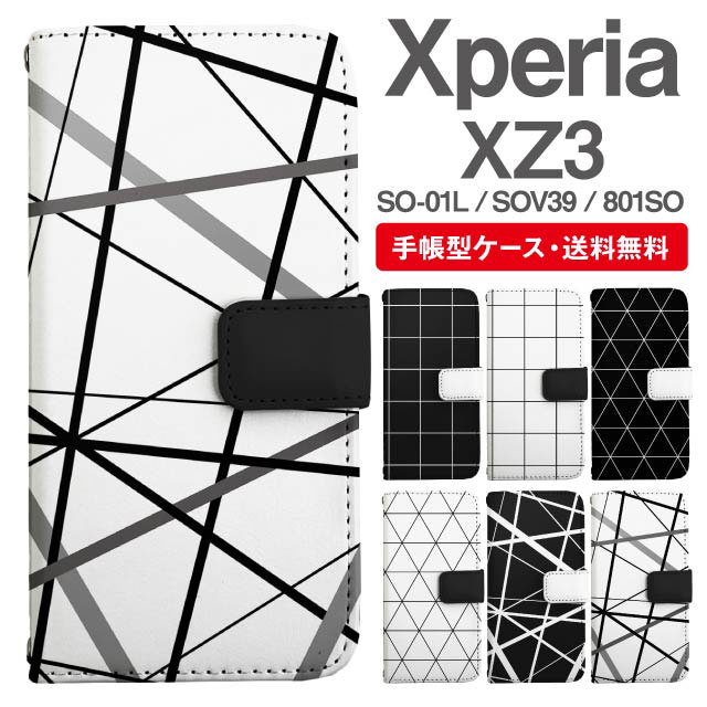 スマホケース 手帳型 Xperia XZ3 エクスペリア SO-01L SOV39 801SO 携帯ケース カバー 送料無料 モノトーン チェック トライアングル ライン agesugi_ssm