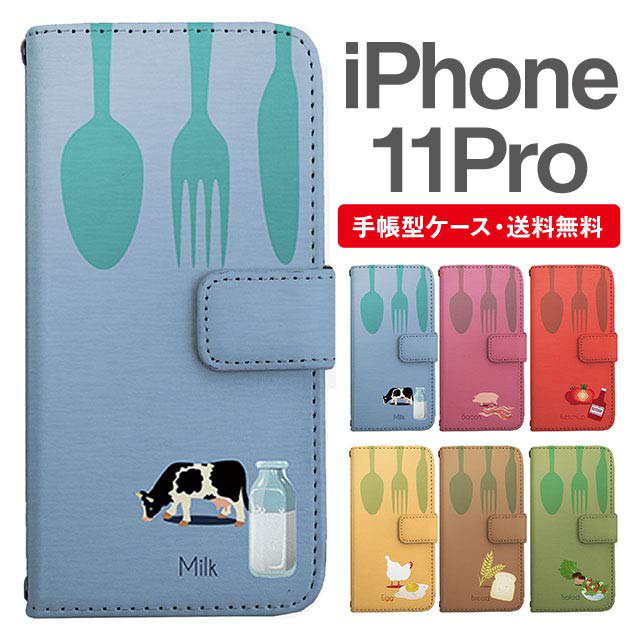 スマホケース 手帳型 iPhone 11 Pro アイフォン 携帯ケース カバー 送料無料 アニマル 動物 牛 ぶた トマト にわとり 朝ごはん柄 agesugi_ssm