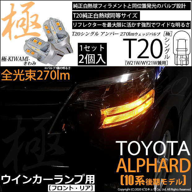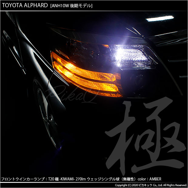 トヨタ アルファード (10系 後期) 対応 LED FR ウインカーランプ T20S 極-KIWAMI- 270lm アンバー 1700K 2個 6-A-3