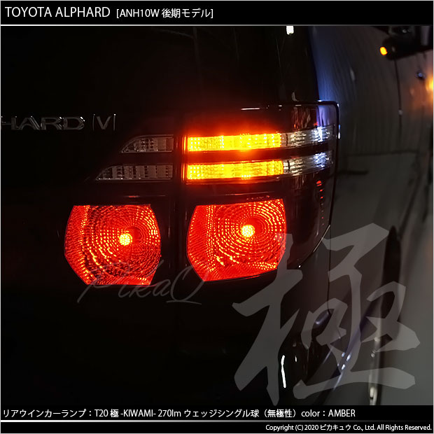 | ピカキュウ,LED専門店,LEDバルブ,国産DC12V車,LED,SMD,T20シングル,W21W/WY21W兼用,ウインカーランプ,アンバー,全光束300lm,全光束270lm,ハイブリッド車対応,極,KIWAMI,きわみ,トヨタ,10アルファード,10系アル,TOYOTA,ALPHARD,ANH10系,MNH10系,後期 |