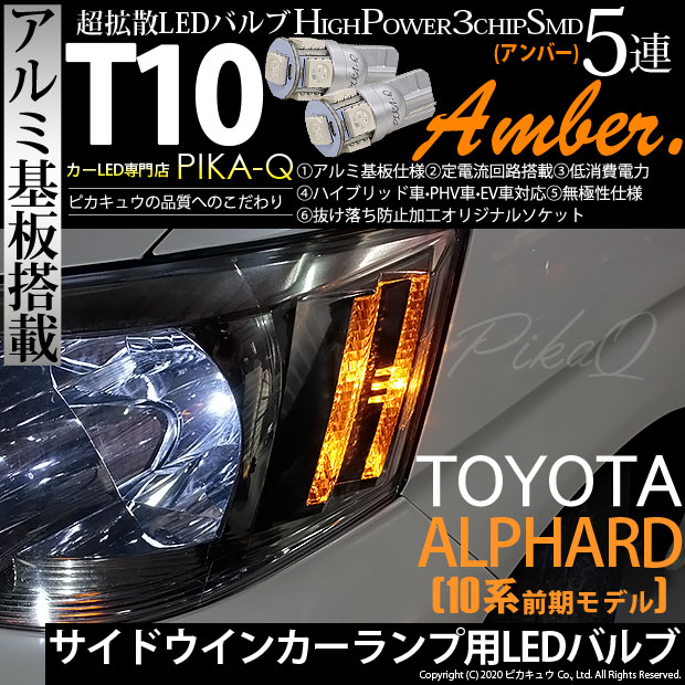 トヨタ アルファード (10系 前期) 対応 LED サイドウインカーランプ T10 5連 アンバー アルミ基板搭載 2個 2-C-3