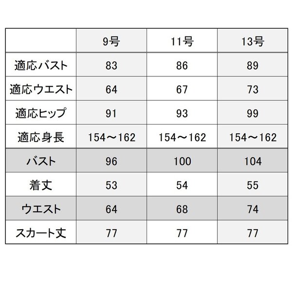 バスト96 上衣丈53 ウエスト64 ヒップ97 スカート丈77
