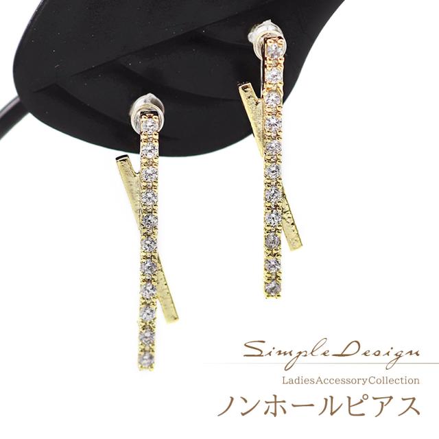 ノンホールピアス レディース シンプル ゴールド ジルコニア バー 棒 モチーフ 揺れない 長方形 きれいめ コーデ おしゃれ イヤリング オメガ ノンホール ピアス風 ピアスに見える ピアスみたい 樹脂 母の日 ギフト 2026 誕生日 ギフト プレゼント 女性 彼女 妻 娘 友達
