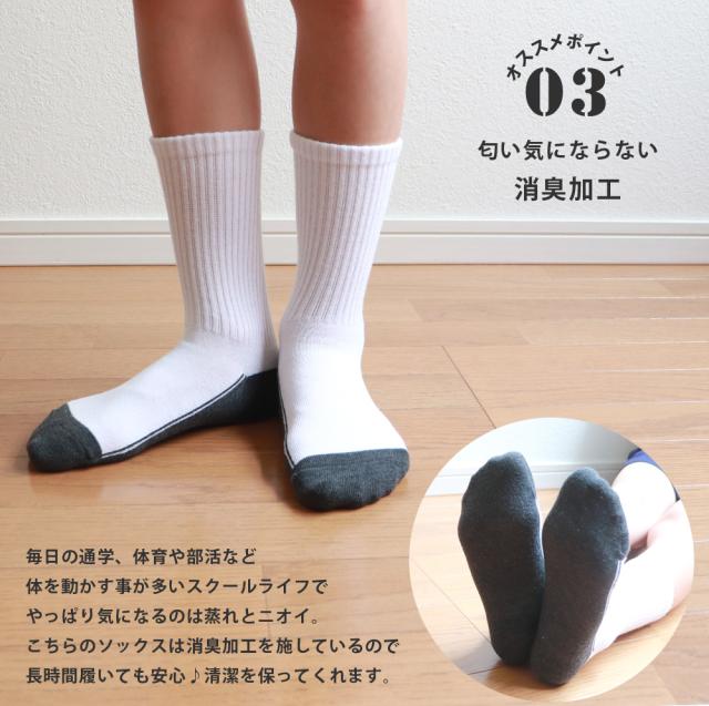 キッズ ジュニア 男の子 女の子 スクール 汚れ目立たない 足底切り替え 白 リブ 靴下 消臭 つま先・かかと補強 クルー丈6足セット 通園 通学 学校 スポーツ 部活 丈夫 サポート