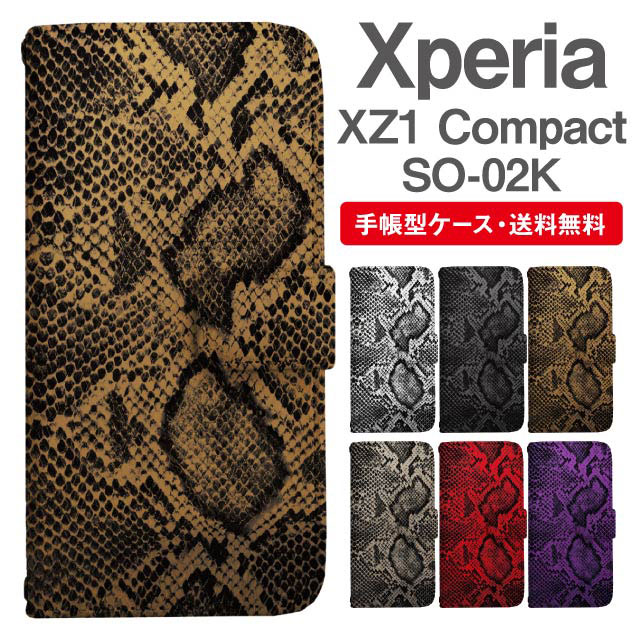 スマホケース 手帳型 Xperia XZ1 Compact エクスペリア SO-02K 携帯ケース カバー 送料無料 パイソン 蛇柄 ヘビ柄 agesugi_ssm