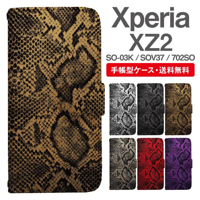 スマホケース 手帳型 Xperia XZ2 エクスペリア SO-03K SOV37 702SO 携帯ケース カバー 送料無料 パイソン 蛇柄 ヘビ柄 agesugi_ssm
