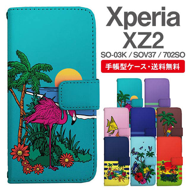 スマホケース 手帳型 Xperia XZ2 エクスペリア SO-03K SOV37 702SO 携帯ケース カバー 送料無料 トロピカル アニマル 動物 フラミンゴ オウム agesugi_ssm