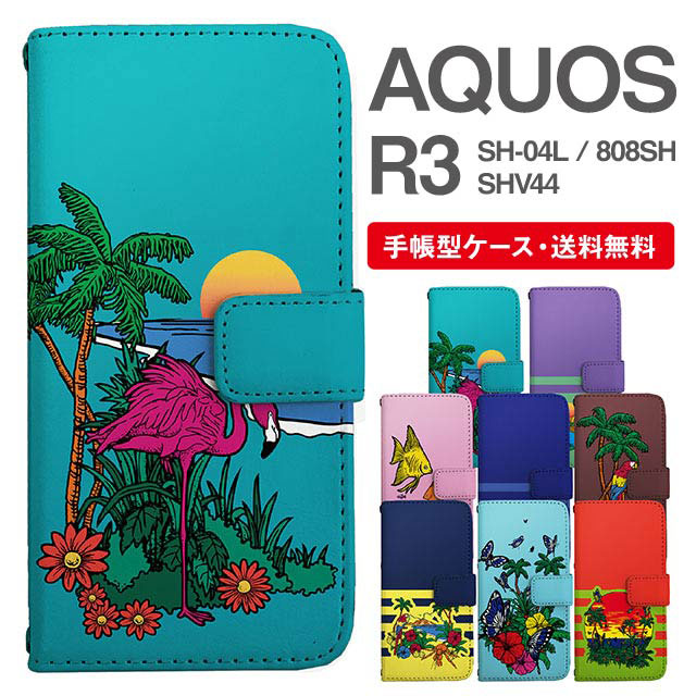 スマホケース 手帳型 AQUOS R3 アクオス SH-04L SHV44 808SH 携帯ケース カバー 送料無料 トロピカル アニマル 動物 フラミンゴ オウム agesugi_ssm