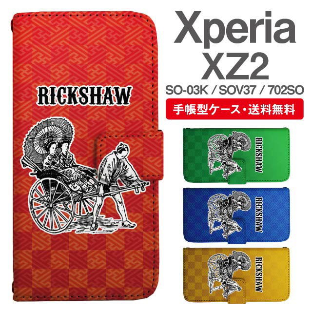 スマホケース 手帳型 Xperia XZ2 エクスペリア SO-03K SOV37 702SO 携帯ケース カバー 送料無料 和柄 人力車 agesugi_ssm