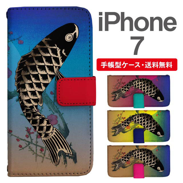 スマホケース 手帳型 iPhone7 アイフォン 携帯ケース カバー 送料無料 和柄 鯉 agesugi_ssm