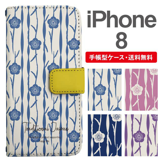 スマホケース 手帳型 iPhone8 アイフォン 携帯ケース カバー 送料無料 和柄 梅 花柄 フラワー agesugi_ssm