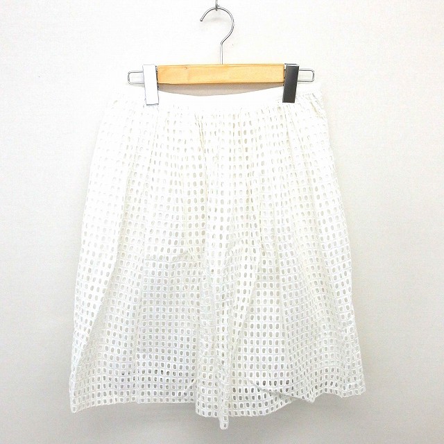 【中古】ノーリーズ Nolley's スカート フレア 膝下丈 総柄 サイドジップ 綿 コットン 38 白 アイボリー /TT7