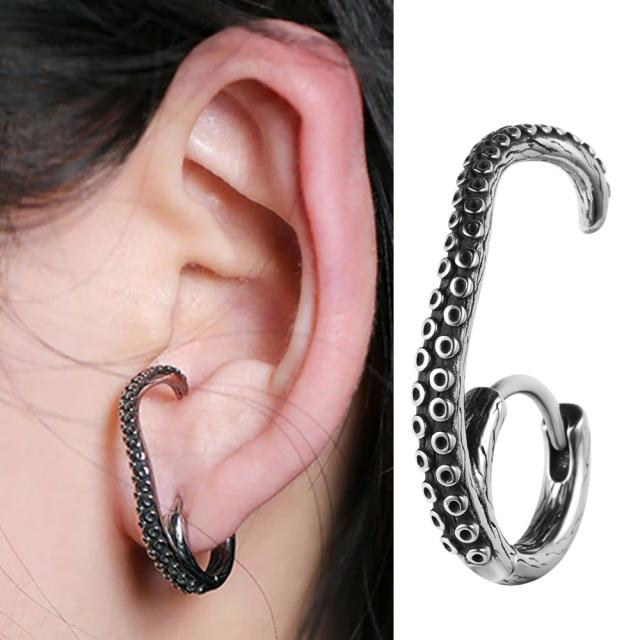 蛸の足が耳に絡みつくユニークで面白いステンレス製のリングピアス。