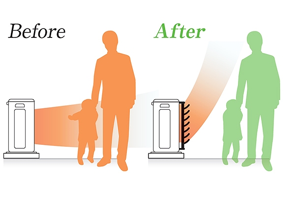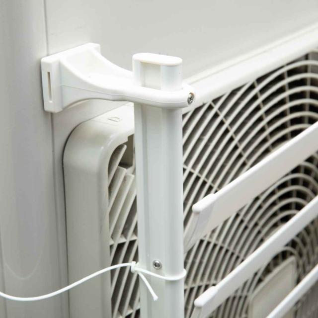 室外機の排気風が隣人の家に吹き込んだり、道路の通行人に向かって放出されることでトラブルに発展することがあります。本製品を設置し、排気の向きを変えることで問題を解決します。