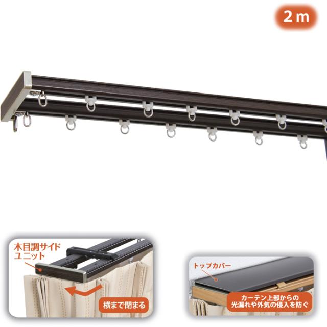 角型伸縮カーテンレール「グレンディアス」 トップカバー付2m用(ダークウッド)