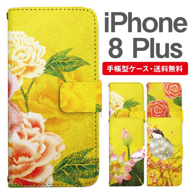 スマホケース 手帳型 iPhone8Plus アイフォン 携帯ケース カバー 送料無料 和柄 日本画 牡丹 椿 蓮 文鳥 agesugi_ssm