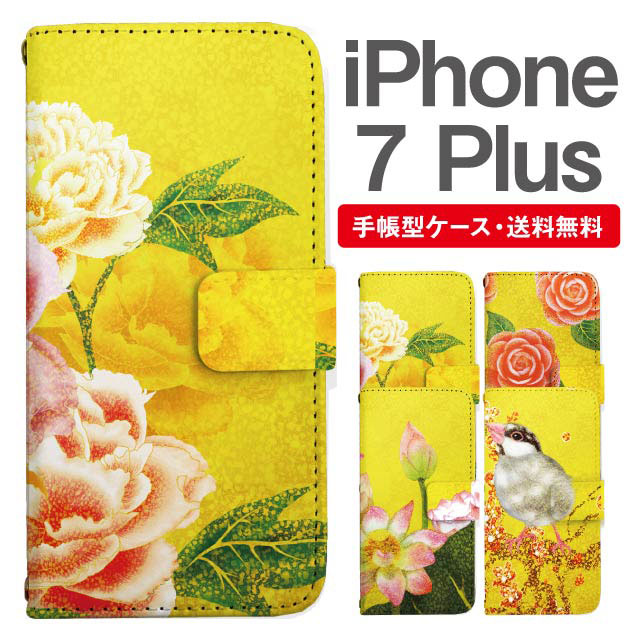スマホケース 手帳型 iPhone7Plus アイフォン 携帯ケース カバー 送料無料 和柄 日本画 牡丹 椿 蓮 文鳥 agesugi_ssm