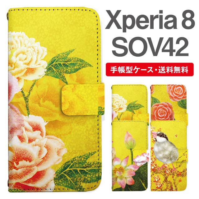 スマホケース 手帳型 Xperia 8 エクスペリア SOV42 携帯ケース カバー 送料無料 和柄 日本画 牡丹 椿 蓮 文鳥 agesugi_ssm