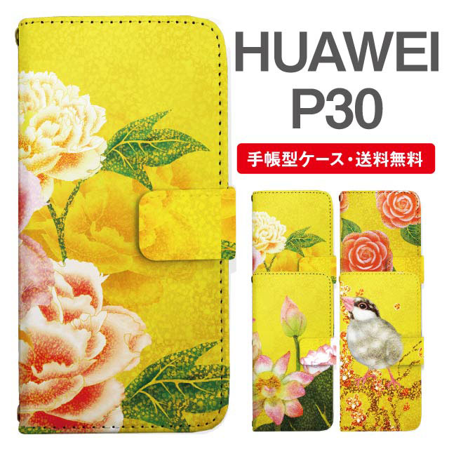 スマホケース 手帳型 HUAWEI P30 ファーウェイ 携帯ケース カバー 送料無料 和柄 日本画 牡丹 椿 蓮 文鳥 agesugi_ssm