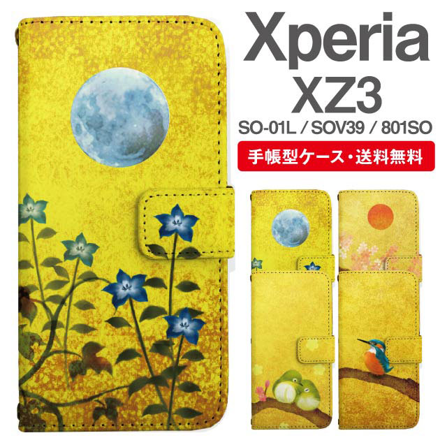 スマホケース 手帳型 Xperia XZ3 エクスペリア SO-01L SOV39 801SO 携帯ケース カバー 送料無料 和柄 日本画 agesugi_ssm