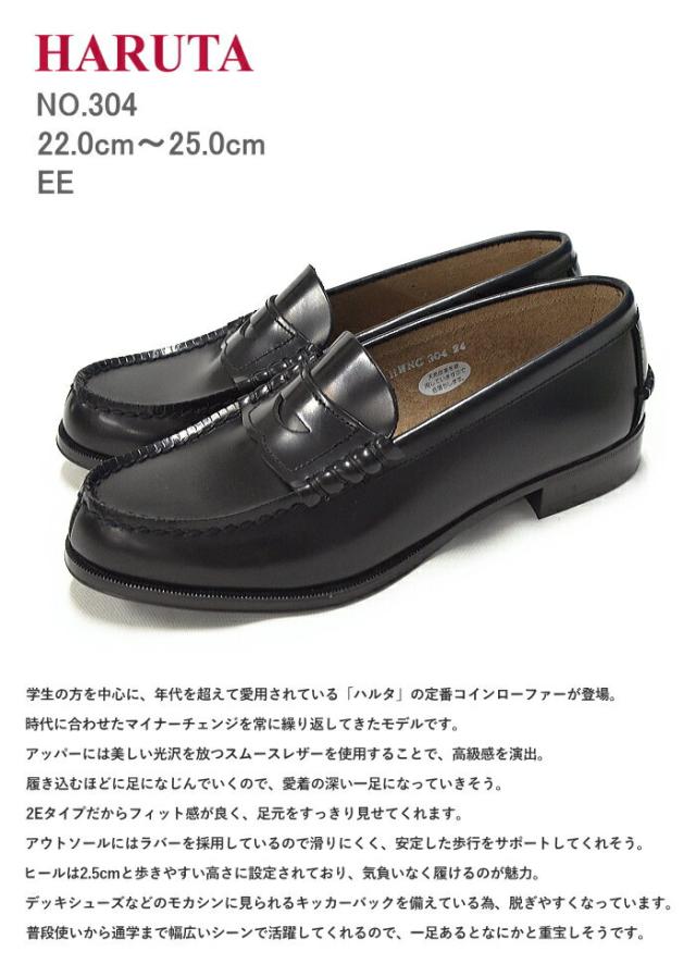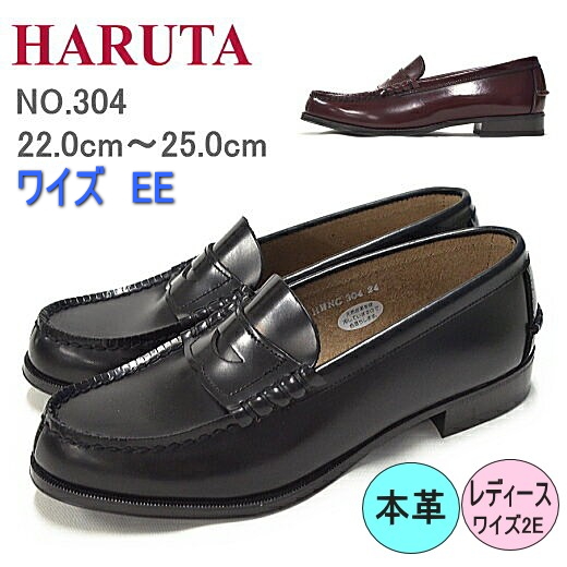 【送料無料】ハルタ レディース ローファー 304 本革 HARUTA 2E EE 女子 コインローファー ブラック ローター 通学靴 学生 学生靴 ローファー