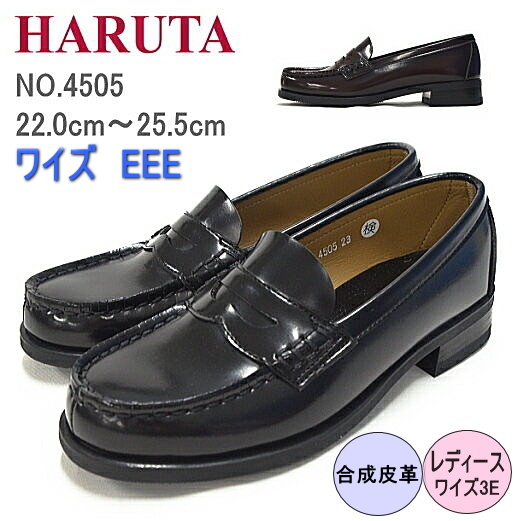 【送料無料】【幅広】ハルタ レディース ローファー HARUTA 4505 3E 幅広 女子 合成皮革 コインローファー ブラック ジャマイカ 通学靴 学生